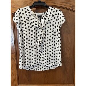 Women's Liz Claiborne Career white and black polka dot blouse short sleeve