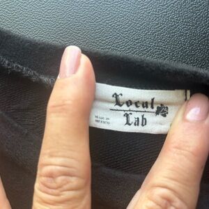Local Lab Black Distressed T-Shirt Women’s Medium – Pink Rose Floral Appliqué Graphic Tee