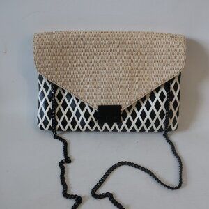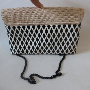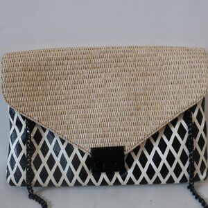 Womens Loeffler Randall White Black Natural Chain Strap Clutch Shoulder Handbag