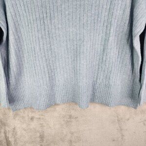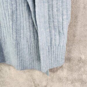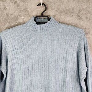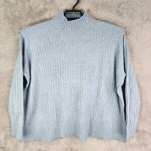 Womens Loft Blue Ribbed Sweater Mock Neck Long Sleeve Acrylic Polyester Size S