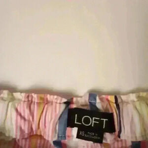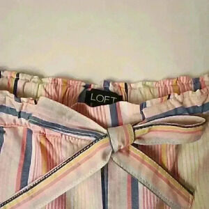 For sale women's Loft brand shorts. Pink blue yellow and white striped, 3.5" inseam, 9" rise.