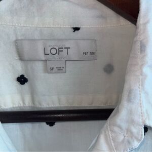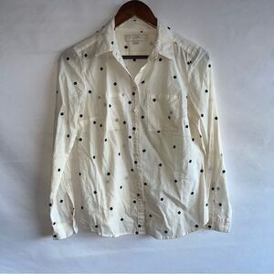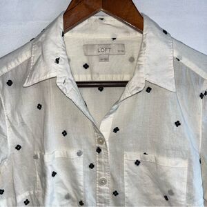 Women's Loft Cream & Black Embroidered Button Down Shirt