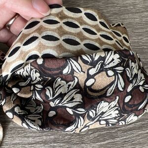 Women's Loft Silk Scarf NWT 42” Square Tan Black Cream Huge Geometric Floral