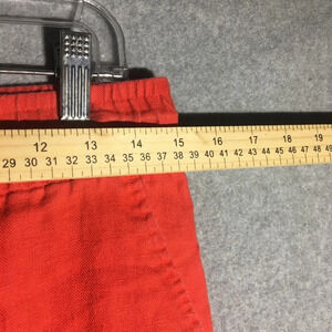 Measurements: Waist is 30 inches. Inseam is 27 inches. Material is 100% linen.
