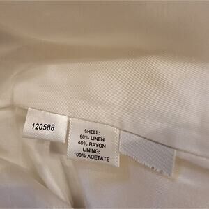 A womens white Loft skirt. The skirt has a zipper on the side. The button on the front is for show. The skirt also has slip as shown in the pictures. The perfect addition to your closet!