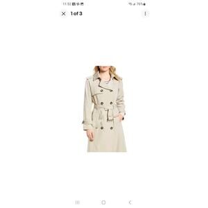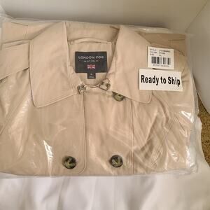 Womens London Fog 3/4 Length Double-breasted Trench Coat With Belt Stone XL NWOT