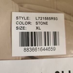 The main photo is a stock photo to show the trench coat. The others are the coat you will receive still sealed in plastic. The color is listed as stone. Size XL. Ships quickly.