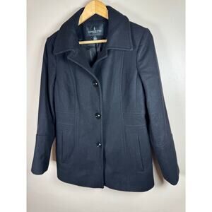 Women’s London Fog Pea Coat Wool Blend Black Small Classic Preppy Academia
