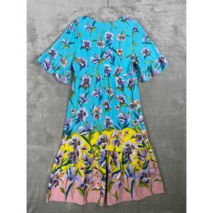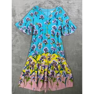 Floral Print V-Neck Shoulder Shirring Ruffle Hem Relaxed Fit Form-Fitting Maxi Dress Size 12P