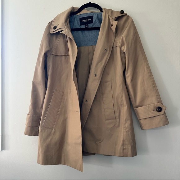 Women’s London fog collection single breasted tan hood trench coat petite small