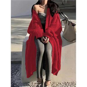 Womens Long Cardigan Sweaters Open Front Oversized Red