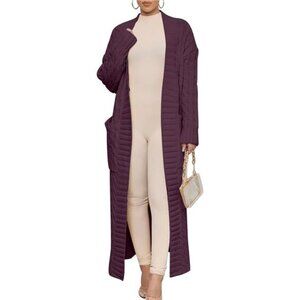 Long cable knit duster for women are featured with open front, long sleeve, floor length, chunky cable knit, ribbed cuff and hem, solid color, pockets on both sides, plus size, loose fit. Fall warm knit coat outwear creates slouchy and casual silhouette