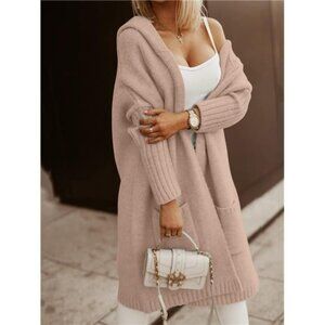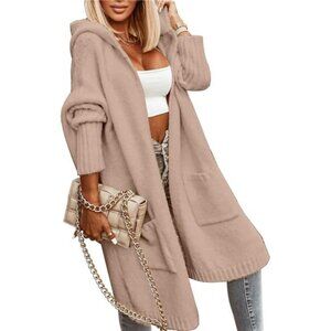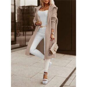 Womens Long Cardigans Cable Knitted OpenFront Oversized Hooded Outerwear Sweater