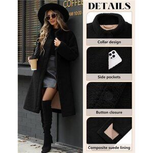 Women's Long Fleece Coat Faux Fur Jacket Button Down Winter Coat