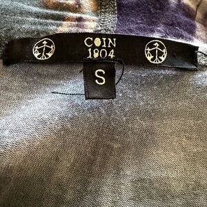 This women's multi-color cover-up features a soft, flowy fabric with a mix of muted tones, including grays, blues, and browns, in an abstract tie-dye pattern. The cover-up has an open front design and includes a hood, making it a casual yet stylish layering piece. The lightweight material drapes elegantly, offering both comfort and a fashionable touch, suitable for beachwear or casual outings. The blend of colors and the relaxed fit create a laid-back, bohemian aesthetic. It also has two pockets. Don’t let the size small intimidate you I was an XL and I fit into that beautifully. I’m now a small medium and I have an identical one and it still fits me beautifully