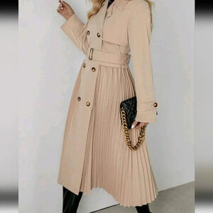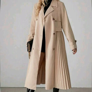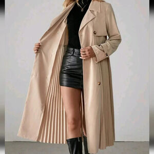 Women's Long Khaki Coat With Lapel, Double-Breasted