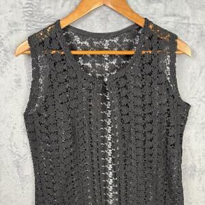 Women’s Long Line Cardigan Crochet Open Knit Lace Witchy Whimsigoth Fairy Grunge Beachy Semi Sheer Emo