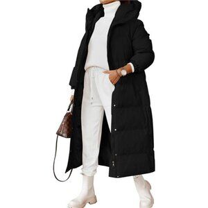 Women's Long Quilted Coat Winter Hooded Button Down Puffer Padded Jacket