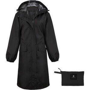 Women's Long Rain Jacket Waterproof Lightweight Hooded Raincoat