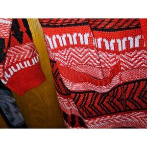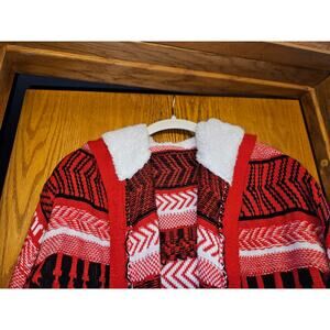 Women's Long Red Cardigan with Fuzzy Hood Size Large