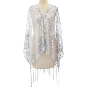 Women's Long Shawl Wraps, Sequin Silver