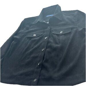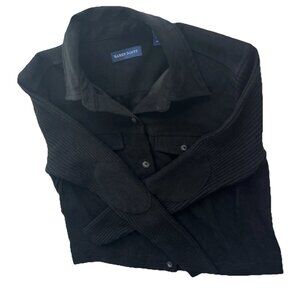Women's Long Sleeve Black Sweater Top Button Up Rib Knit Sz Small Elbow Patches