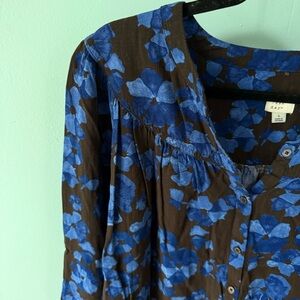 Stylish blue floral blouse with long sleeves. Perfect for casual outings.