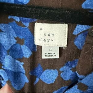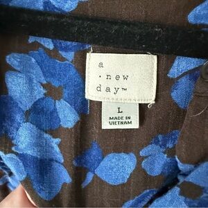 Women's Long Sleeve Button-Front Blouse-A New Day-Blue Size Large
