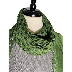 This women's sweater features a stylish color block design with a cowl neck for added warmth and sophistication. The green and black knit material creates a cozy and chic look, perfect for medium size women. The sweater is designed to be both functional and fashionable, making it a versatile addition to any wardrobe. Can also be worn as a dress.
