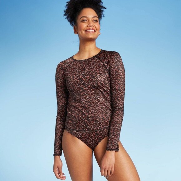 Our Women's Long Sleeve Crew Neck Rash Guard in rust color is a must-have for sun protection. Its comfortable, durable design is perfect for any water sport.