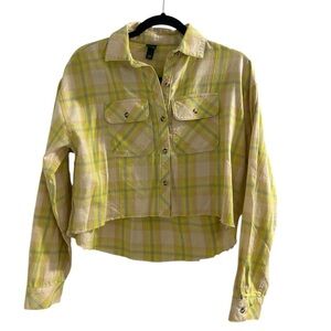 Women's Long Sleeve Cropped Button-Down Shirt - Wild Fable Yellow