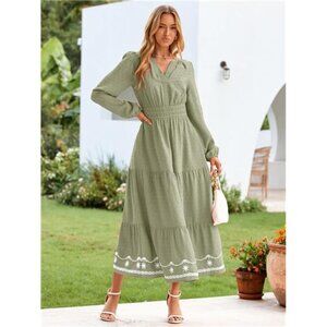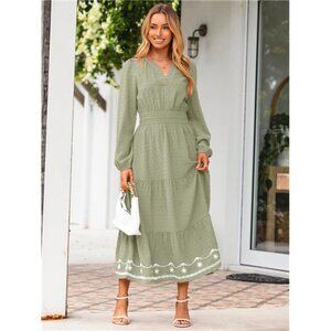 Fabric - Maxi dress for women is made of premium durable polyester fabric.Thanks to the skin-friendly and breathable material, the casual dresses with cute 3D swiss dots is gentle on your skin. The Softly Flowing Fabric Also Makes You Feel-Good Factor And Comfortable Wearing Experience In Spring, Summer Days