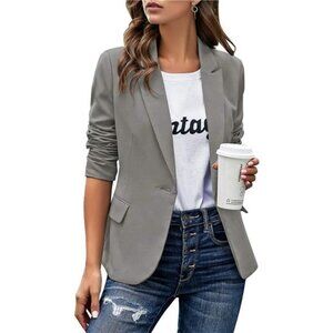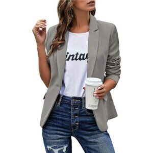 Women's Long Sleeve Formal Blazer Jacket Grey