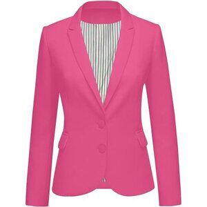 Women's Long Sleeve Formal Blazer Jacket Rose Pink