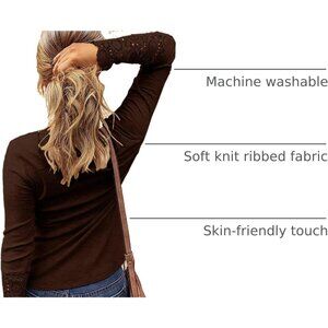 Features: This lightweight, breathable blouse features a deep V neckline with functional buttons, delicate lace details at the sleeves, and a classic solid color. The soft knit ribbed fabric is stretchy and skin-friendly, offering a comfortable fit that flatters most figures. The elastic closure ensures an easy, snug fit.
