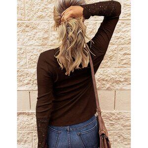 Women's Long Sleeve Lace V Neck Button Down Blouse — a stylish, feminine piece with a touch of elegance.