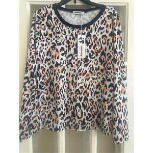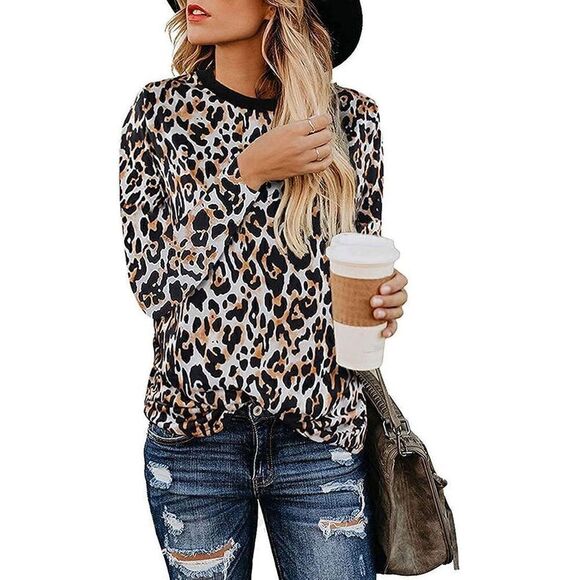 Women's Long Sleeve Pullover Tunic Top leopard print XL Casual Shirt Blouse