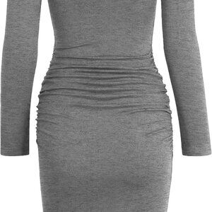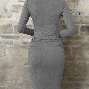 Women's Long Sleeve Ruched Casual Sundress Bodycon Sheath Knee Length Dress