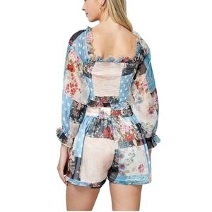Women's Long Sleeve Smock Top & Mini Shorts Multi Print 2PC Set