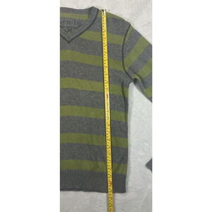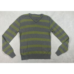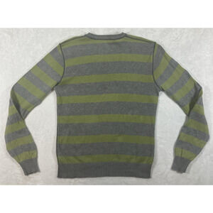 Womens Long Sleeve Sweater Striped Preppy V-Neck Size Medium 100% Cotton Y2K
