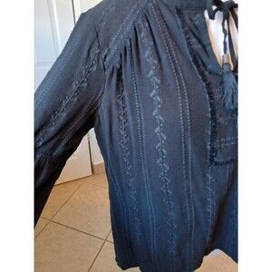 Women's Long Sleeve Tonal Embroidered Peasant Top - Knox Rose Black Size Small