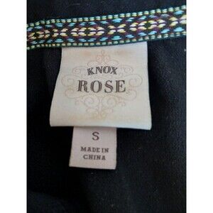 This women's blouse by Knox Rose is a stylish choice for various occasions, including travel, casual outings, and workwear. The top features a V-neckline with a pullover closure, long peasant sleeves with tonal embroidered accents, and a flattering hip-length fit. Made from 100% Rayon in a solid black color, this boho-chic piece is suitable for all seasons, particularly summer, fall, and spring. The top exudes a bohemian flair and is perfect for adding a touch of unique style to your wardrobe.