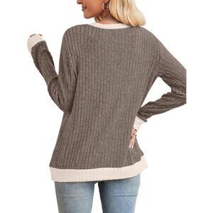 Womens Long Sleeve Tops Color Block Lightweight Sweaters Loose Fit Crewneck Fall
