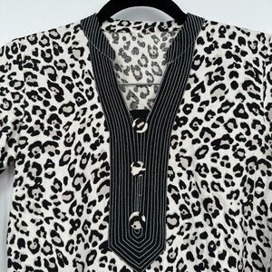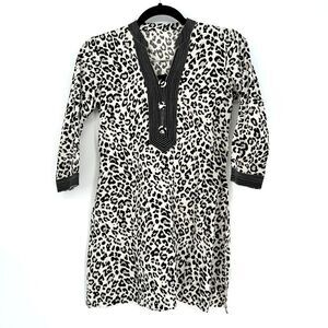 Womens Long Sleeve Tunic Top Mini Shirt Dress Size XS Leopard Boho Edgy Playful