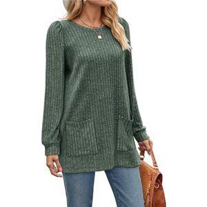 Womens Long Sleeve Tunic Top Sweater Loose Fit Long Sweater with Pockets Casual