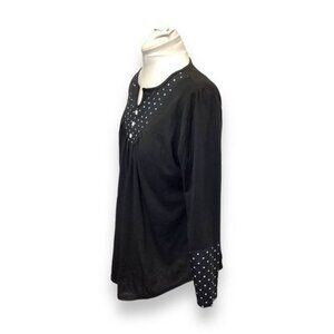 Women’s Long Sleeve V Neck Color Block Tunic, Black, size XXL