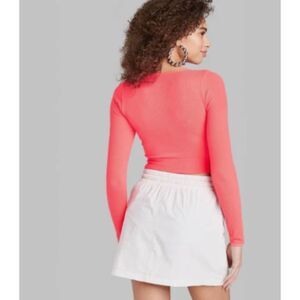 Originally $18.00 - Seamless T-shirt from Wild Fable in a solid color with ribbed texture. Tailored in a slim-fit silhouette with a rounded V-neckline and cinch-front accent. Made from lightweight fabric with spandex for comfortable wear that moves with you. Pullover style complete the look and allows for easy on and off.