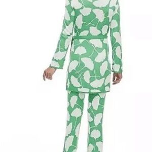 This V-Neck Ginkgo Long-Sleeve Sweater Wrap Top from Diane von Furstenberg adds a dose of style to your everyday ensembles. Made from jacquard knit fabric, this sweater wrap top features a ginkgo green pattern. It's designed with a functional front tie, tunic length and bell sleeves for a chic silhouette.