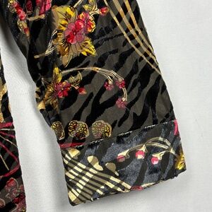 Women's Long Sleeve Velvet Burnout Tunic Top Button Up Sz L Boho Gypsy Caleoas
