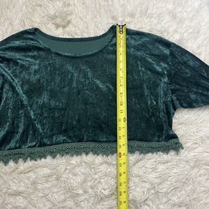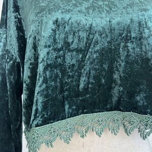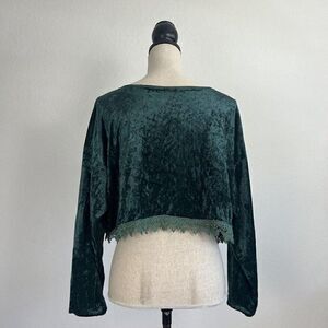 Womens Long Sleeve Velvet Cropped Top Emerald Green Lace Brocade Trim large